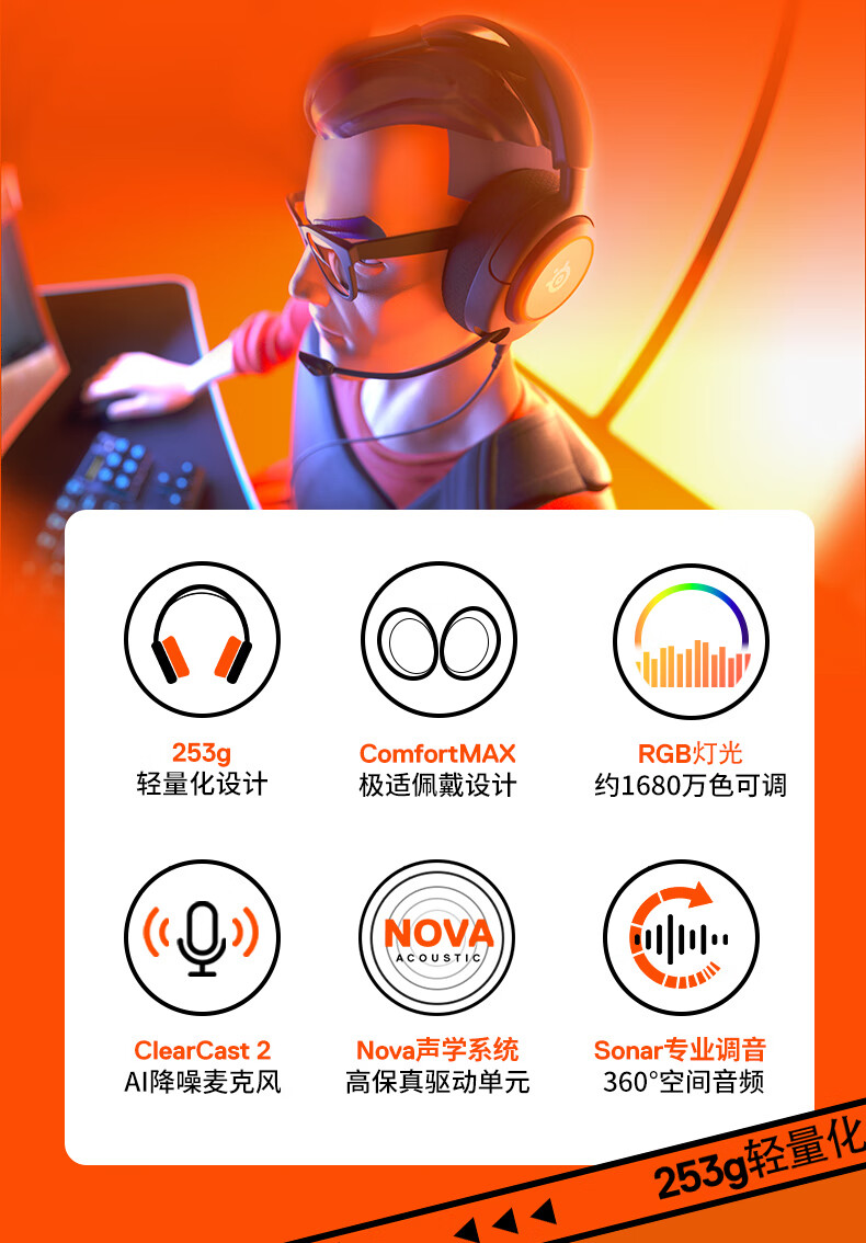 赛睿(SteelSeries)寒冰新星Arctis Nova 3游戏耳机 电竞头戴式有线耳机寒冰5升级版 炫彩RGB灯效 轻量化253g