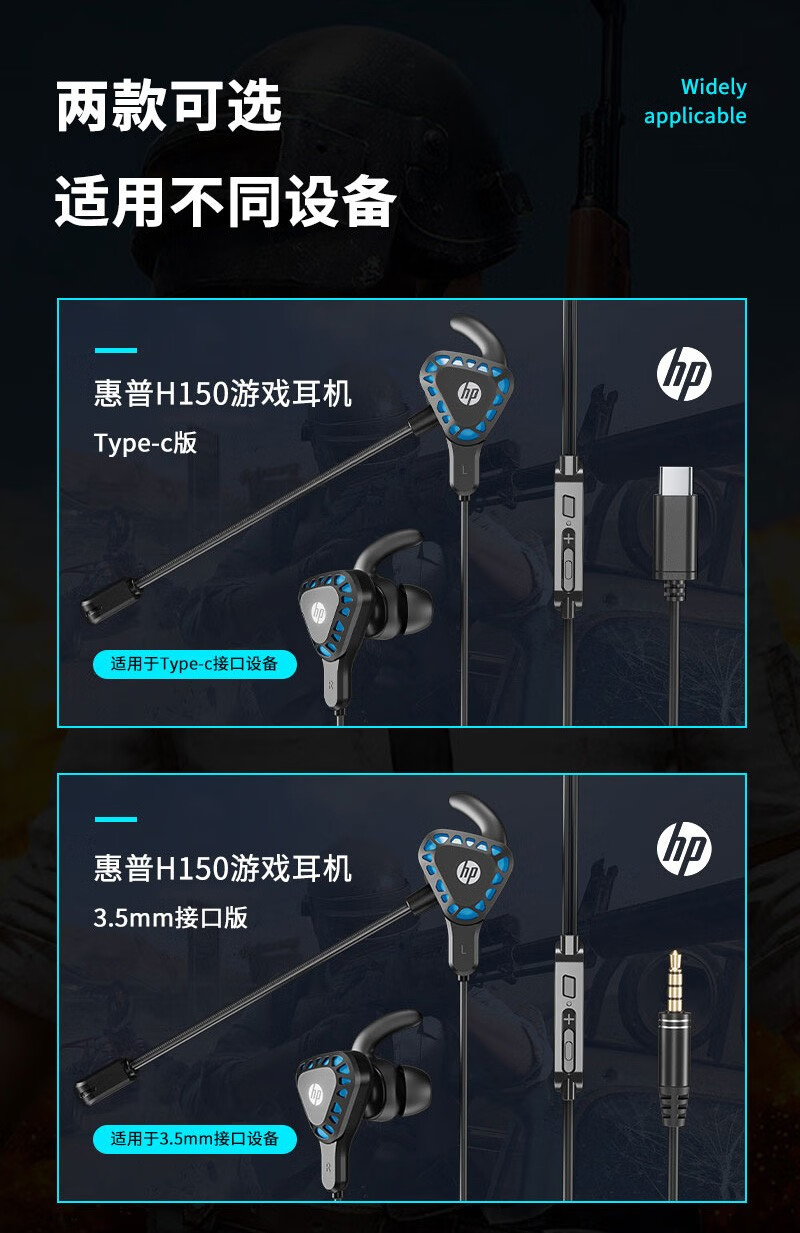 惠普(HP) H150 入耳式游戏耳机电脑手机通用耳机手游电竞耳麦吃鸡耳机 3.5mm接口