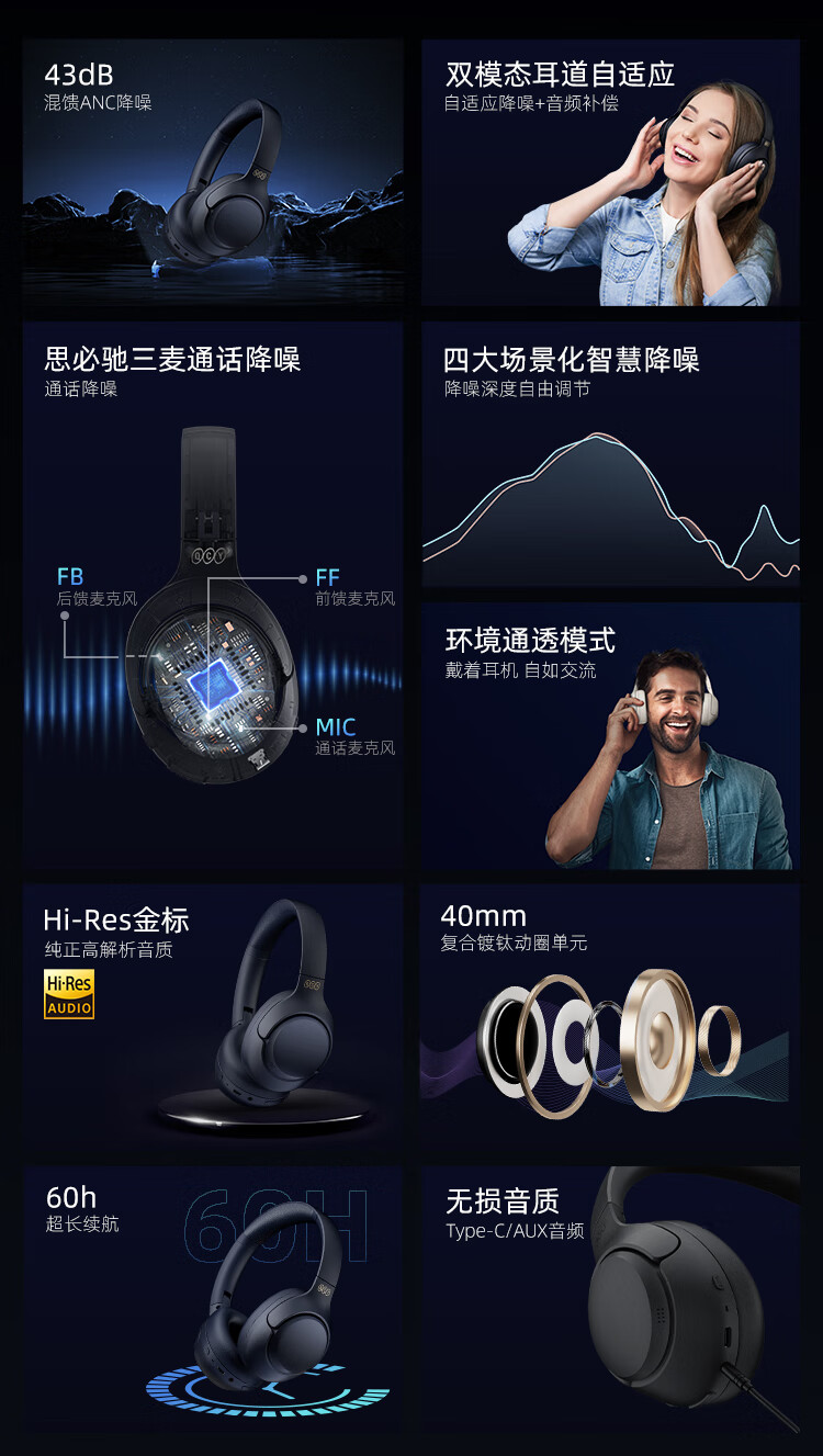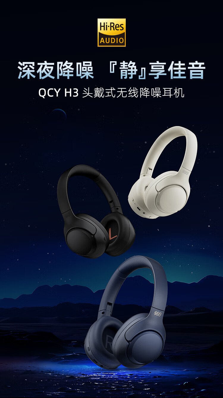 商品名称:QCY H3 主动降噪 头戴蓝牙耳机重低音无线耳麦手机听力超长待机适用于全手机通用