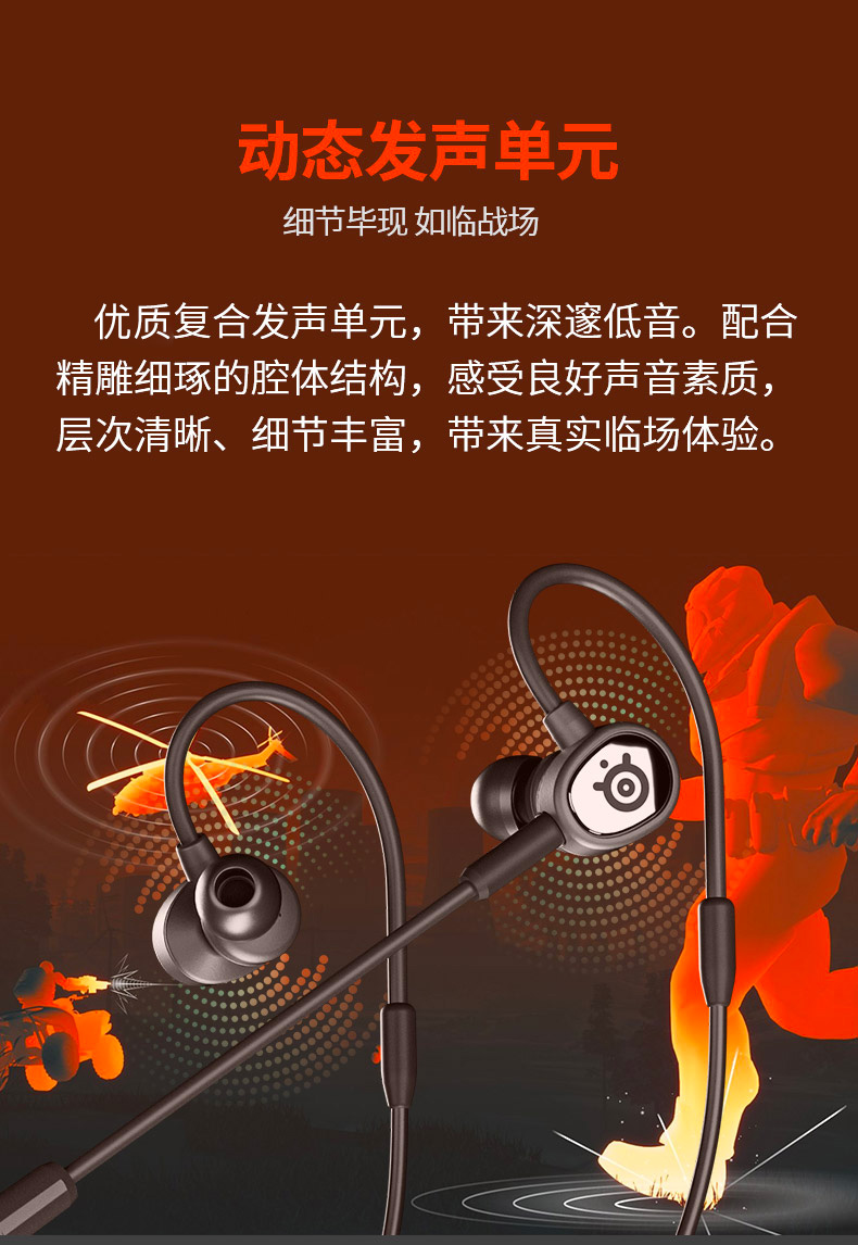 赛睿(SteelSeries) 突圣骑tusq入耳式 游戏耳机 挂耳式 电竞耳机 黑色 官方标配